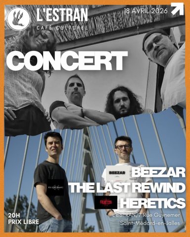 Samedi 18 avril, trois groupes viennent faire bouger l’Estran ! On vous attend nombreux pour danser sur les sons de :